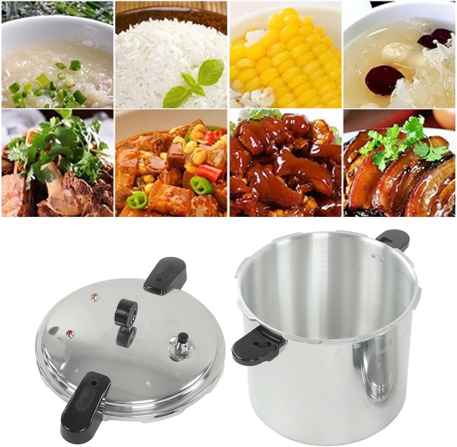 Works on gas, electric, smooth and induction ranges. Constructed of heavy gauge polished aluminum with a stainless steel base for fast, even heating. The vent lock allows pressure to build only when the lid is closed properly and prevents the lid from opening until the pressure is safely reduced. Can be used as water bath prers to pre fruits, jams, jellies, pickles and salsas. It is best to use pure water to directly cook porridge or broth for the first time. You can also use rice water or distilled water to cook it. Remember not to boil tap water for the first time. This would cause a series of reactions between the pot and the iron and salt in the water, causing the water-covered part of the pot to change. It turns black, although it is harmless, but it affects the appearance. 1. Before use, the exhaust holes of the pressure relief valve should be carefully checked to ensure that they are not blocked. 2. Use only liquids in the cooker that can generate steam, such as water or broth. 3. Strictly control the amount of cooked food each time according to its characteristics. 4. When steam escapes steadily from the pressure relief valve, immediately reduce the heat.