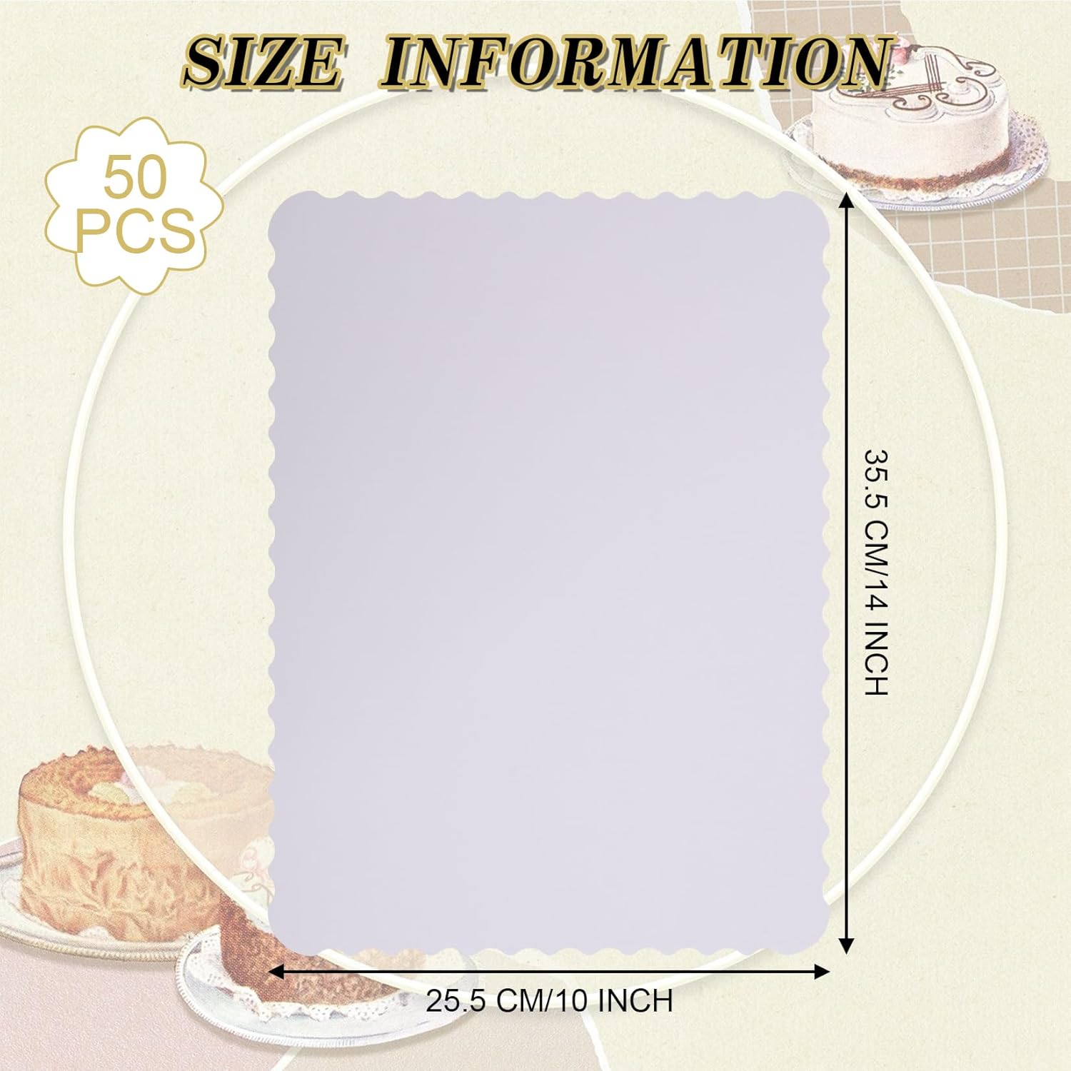 Anscher 50 Pack 14 x 10 Inch Greaseproof Rectangle Cake Boards Corrugated Single Wall Cake Pad Half Sheet Cake Board Rectangular Scalloped Rectangle Dessert Base for Cake Pizza(White)