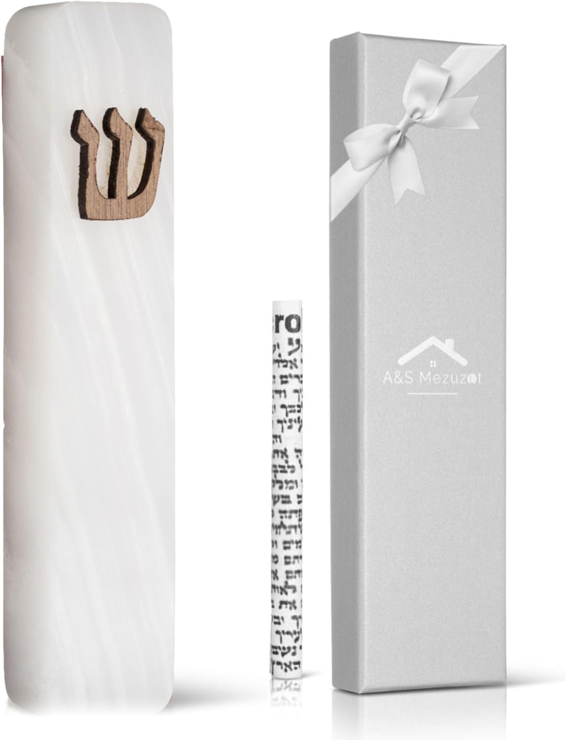 Enhance your home's spiritual ambiance with this exquisite mezuzah case. Crafted from crystal marble, it exudes elegance and protection. The weatherproof design safeguards the scroll within, ensuring its longevity. This Judaica piece serves as a beautiful reminder of blessings and a symbol of divine presence. Adorn your doorways with this mezuzah case, a harmonious blend of tradition and style. Multiple sizes and styles. Easy installation instructions included.