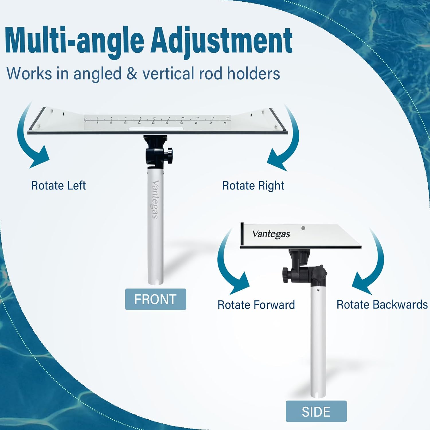 Dimensions: 21.25" x 13" (54cm x 33cm); the larger size makes the use more convenient. The cutting board is made of marine grade high density polyethylene, which is strong and durable, UV-resistant, not easily scratched. Outdoor use will not deform, crack, or discolor, and will not absorb fishy smell or other peculiar smell. The Cutting Board is provided with 2 knife holsters, a plier receptacle and a knife slot on the left and right sides. A slot on the back to allow overboard drainage, keeping your work surface clean and free of any residue. There is a hanging hole on the side to hang a hook to ensure that the tools will not fall into the sea. Our cutting board are engraved with a 20-inch fish ruler that will not become blurred with long-term use.Multi-angle Adjusting Arm is composed of unique Double 360° Rotational Stopper and Aluminum Alloy Arm, durable and rust-resistant, fits most cross-pin type fishing rod holders. It can be used as a fish cleaning table/board or bait cutting board, as well as a serving table, a bar drink station.