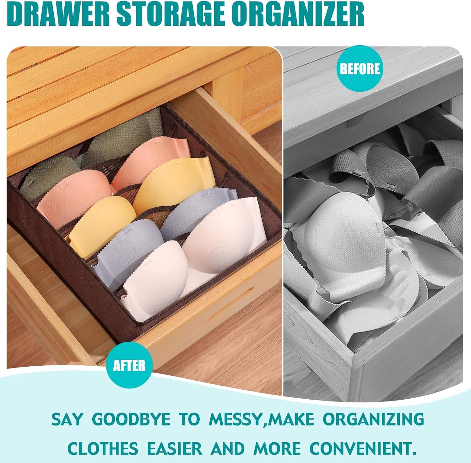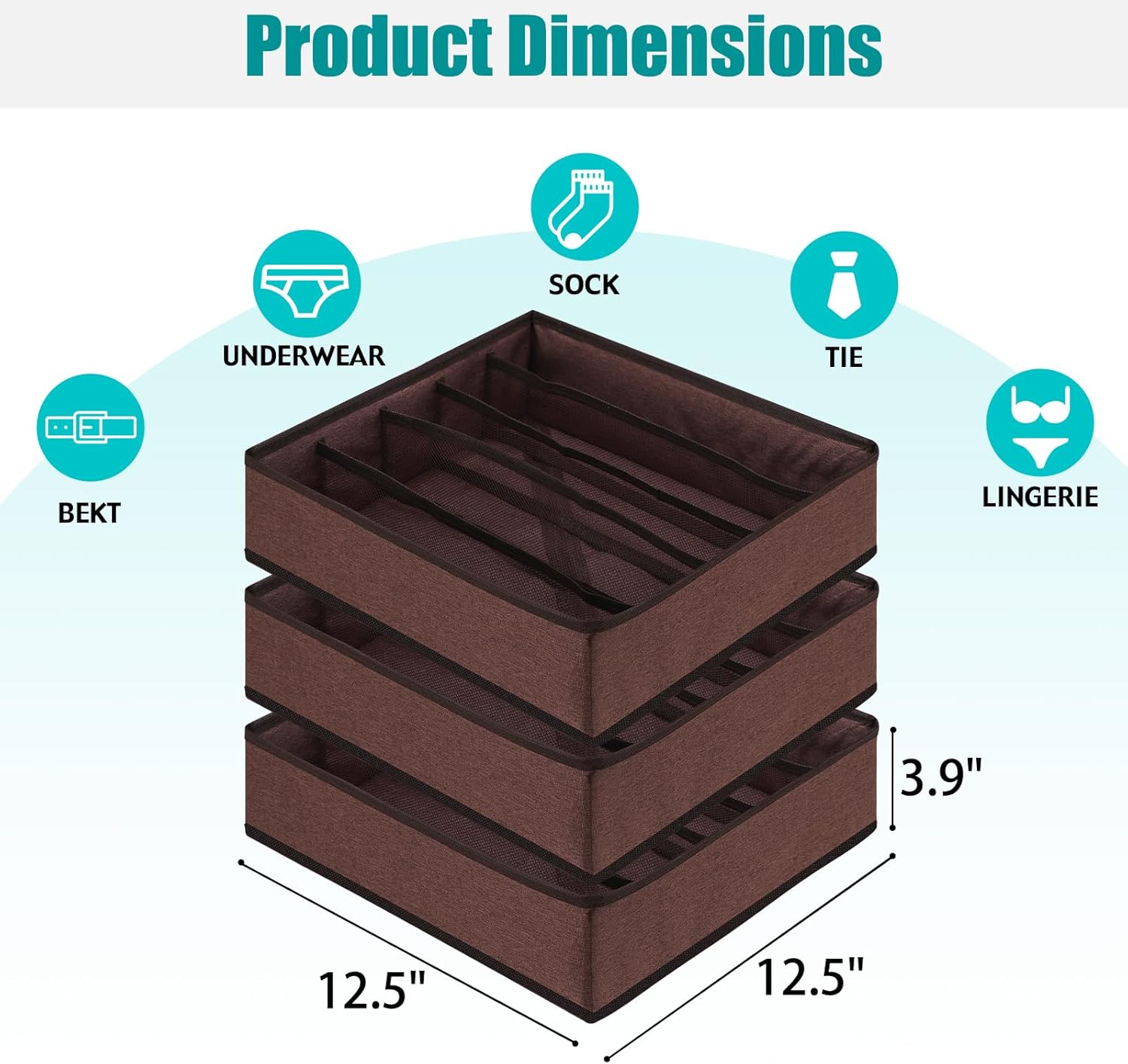 3 Pack Drawer Organizers with 15 Cells The bra organizer for drawer will make your drawer a new look, so that each piece of clothing has a separate space to place, instead of being as messy as before, making it easier for you to find what you want. If you’re not a fan of larger compartments to keep things separated, our bra and underwear organizers are designed with 15 individual slots to ensure everything is in plain sight. Those clothes drawer organizers are ideal for storing different kinds of socks, underwear, ties, etc. Sturdy Construction: Will not be easy to tear or bend Each Pack Dimension: 12.5"x12.5"x3.9" (32x32x10cm). 3 Pack EASY TO ASSEMBLE & EASY CARE ASSEMBLY INSTRUCTIONS: You only need to unzip the bottom zipper to easily fold or unfold those storage boxes. Lightweight and convenient to use. Foldable design,the closet lingerie organizers can be folded flat to save space when not in use, simply open the zipper and fold flat to store.