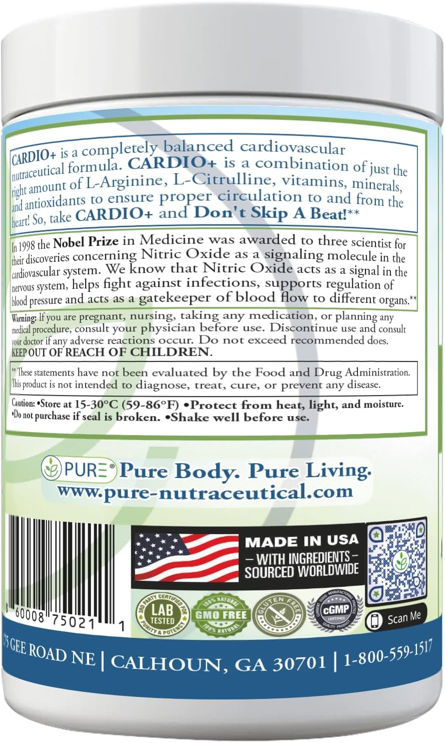 The Standard in Cardiovascular Excellence For over a decade, Cardio 911 has been the trusted name in advanced heart support. In 2026, we continue to lead the way with a professional-grade formula that addresses the three pillars of cardiovascular health: Nitric Oxide production, arterial flexibility, and myocardial energy. The Cardio 911 Difference: Triple-Action Circulation Why take multiple pills when you can have one complete shield? The Nitric Oxide Engine: High-dose L-Arginine and L-Citrulline work in tandem to relax blood vessels, supporting healthy blood pressure already within a normal range and enhancing oxygen delivery to your extremities. Vitality & Mood Support: By optimizing blood flow to the brain and body, Cardio 911 helps reduce fatigue and supports the mental clarity and physical stamina needed for a high-performance lifestyle. Clean. Potent. Professional. Made in the USA under the strictest quality standards, Cardio 911 is the "Pure Living" choice for those who take their heart health seriously. Restore your flow, protect your heart, and experience the energy of a well-nourished cardiovascular system. Suggested Use: As a dietary supplement, add 1 scoop with 8-10oz if water (adjust the amount to your taste) and mix. For best results, do not consume with food. Cardio 911 (Soon to be rebranded as Cardio+)