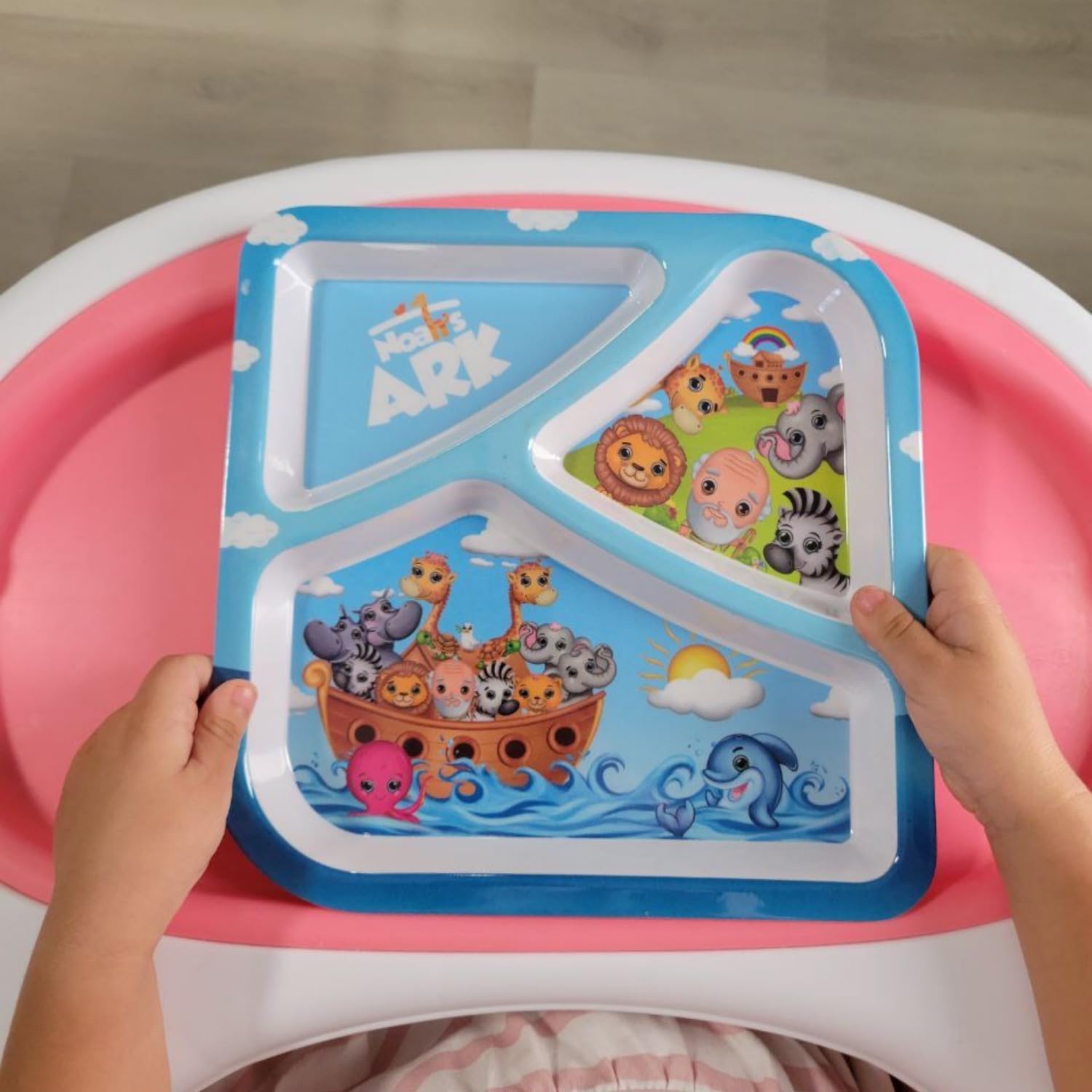 | Material Type | Divided Plate, Round Bowl & Round Plate: Melamine, Placemat & Plastic tumbler Cups: Polypropylene |