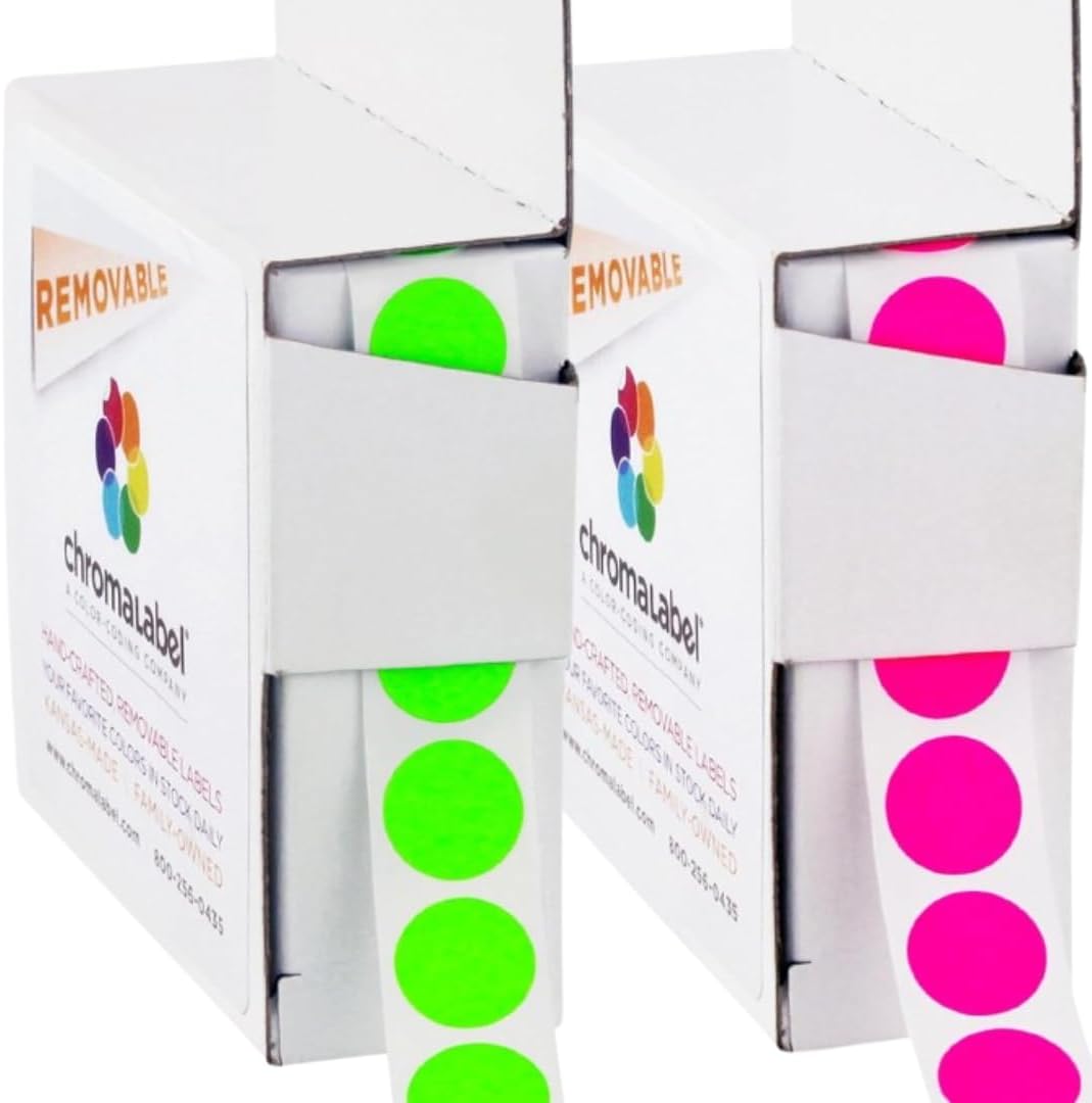 These ChromaLabel 1/2 inch white circle sticker labels provide an easy-to-use solution for organization, pricing, and labeling needs. The high-quality matte finish ensures effortless writing, while the removable adhesive offers a secure hold with clean removal. Dispensed from a convenient box, these small round dot stickers are ideal for price tagging, inventory control, classroom projects, and more. Proudly made in the USA, they guarantee quality and reliability for your labeling tasks.