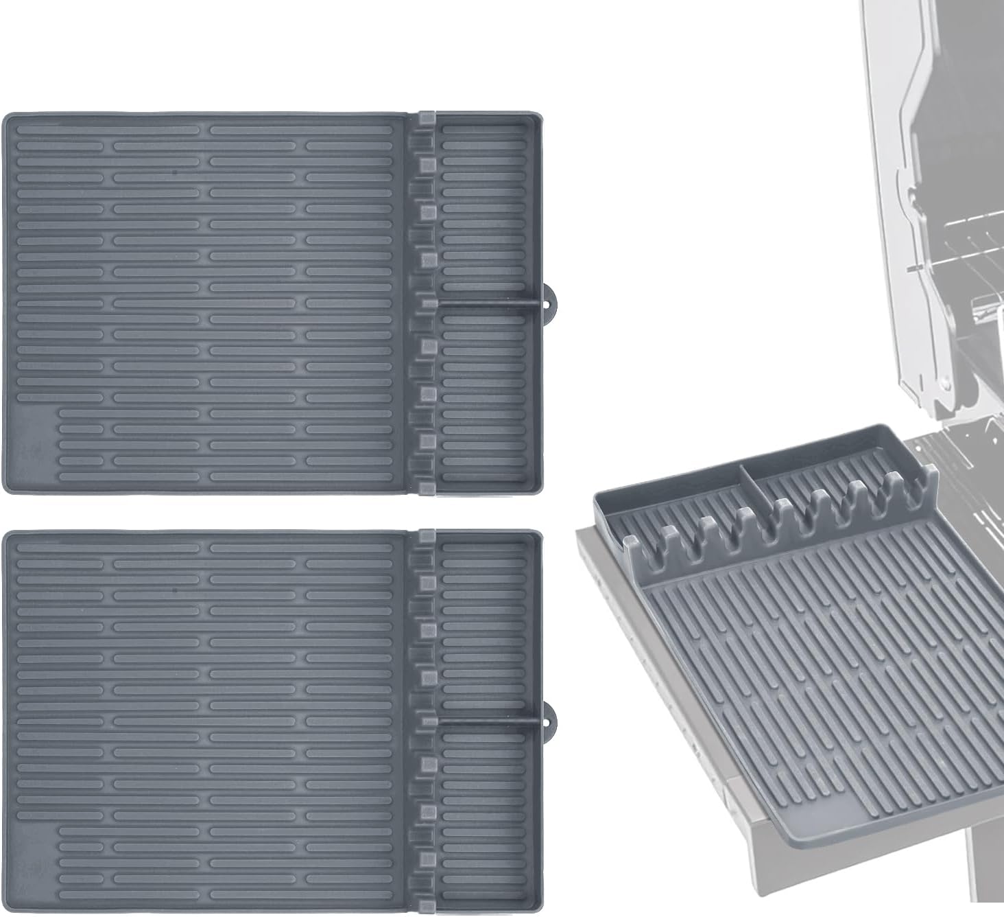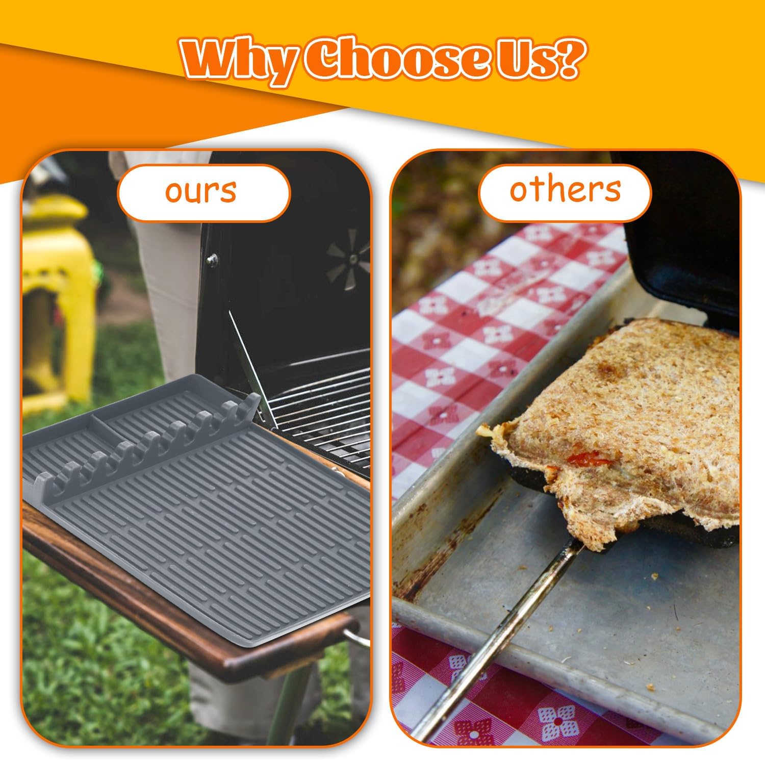 Function: 1. Protective mat: Light and easy to stow, can be used as a spatula holder and utensil holder and offers space for different grill tools without slipping. 2. Silicone material: made of durable, thick silicone, soft and flexible, derives heat quickly and is high -temperature . Easy to , simply wipe it off. 3. Heat -: With increased grooves on the underside for easy storage of tools. Can be used as a spatula holder and utensil holder and offers space for various grilled tools without slipping. 4. Versatile: Suitable for kitchen, outdoor grill, dining table and more. Provides order and cleanliness in the workplace and prevents scratches. 5. Suitable : The silicone grill mat is specially developed for grills and offers comfort and adaptability to different cooking environments. Specification: Item type: Heat- and dust-density silicone protective mat Material: Silicone Size: approx. 40 x 30 x 3 cm Scope of delivery: 2 x silicone mat