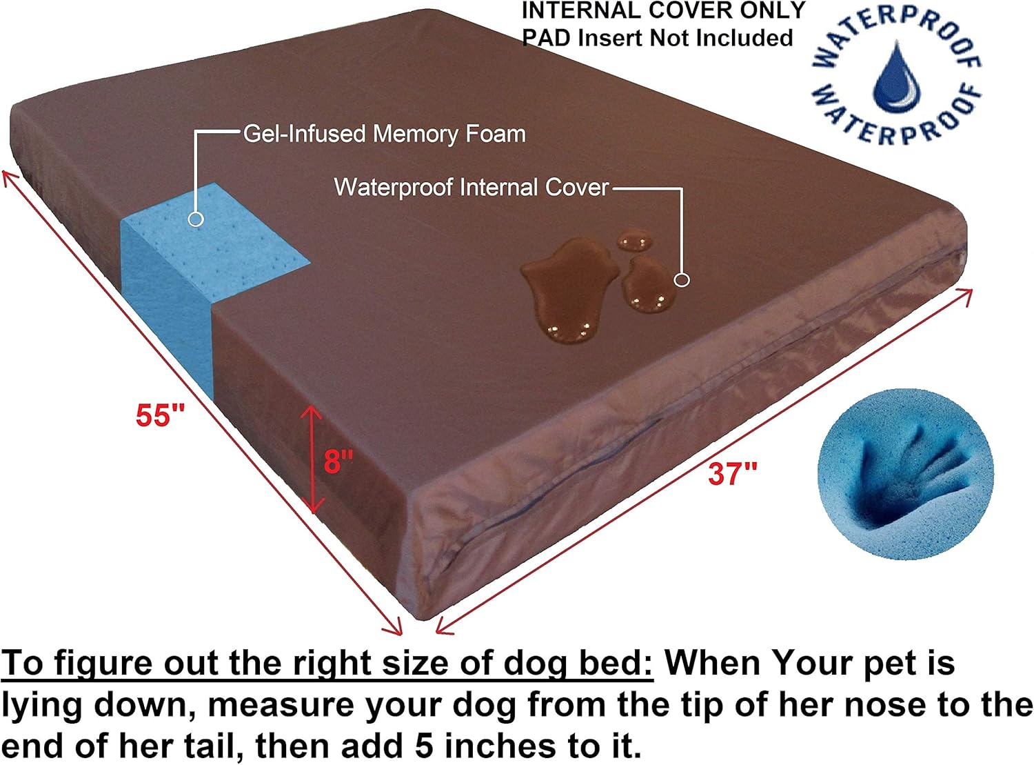 The listing is internal and external replacement cover only without any stuffing or insert. Tired of the pet bed cover that easily tears and difficult to clean? Dogbed4less offer the best material cover for comfort, durability and truly easy to clean cover that blends in seamlessly to your home. This 55X37X8 Inches Zipper Cover in navy blue color is made with super duty 1680 denier nylon fabric for easy cleaning and maintenance. Our external ballistic cover can resist chewing, scratching, water, hair, dirt, and odors, and can be easily wiped down which is interchangeable at top and bottom sides. The external cover is machine washable and dry-able and Internal cover is recommend hand wash only.This listing is for External and Internal Replacement Cover only, please visit dogbed4less storefront here at Amazon for a complete dog bed with memory foam pillow or pad in small, medium, large, XL to XXL jumbo sizes. PAY 40% to 60% LESS than retail price. Our pet bed cover make with high quality 1680 Nylon fabric to ensure the ultimate comfort and long lasting that rarely sold in other retailer due to the higher cost in material. We believe that our pet should deserve a great cover like this with the fraction of the cost.The size of this cover is designed to fit on 55"X37"X8" pad by Dogbed4less jumbo size pet bed product.