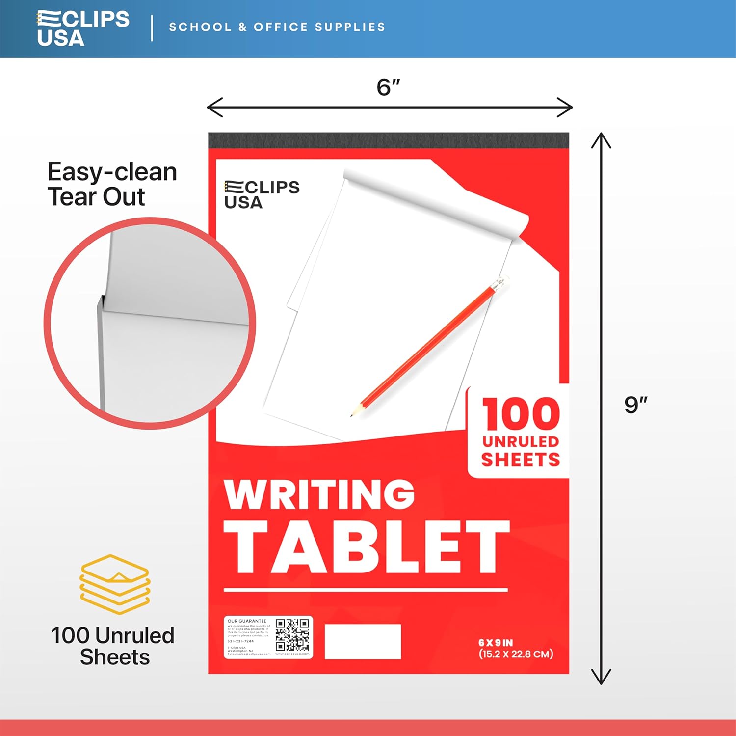 12 Notepads Unruled Writing Tablet (Bulk)Personal, office, and school use Dimensions 6 x 9Glue bonded top for easy tear off100 sheets Per PadWhiteChipboard backHigh quality ruled paperSturdy coverPerfect size for easy storageWhether you're using these small notepads bulk for school, home, or professional use, the right quality supplies can make all the difference when it comes to notepads. That’s why we put together this high quality 6 x 9 ruled notepad bulk set.