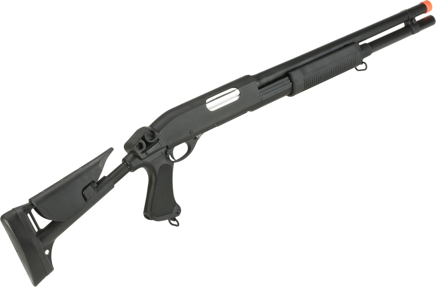 For years CYMA has been a leader in producing affordable, reliable and effective AEG Airsofts, with the introduction of their line of 870 shotgun, CYMA is branching out. The 870 shotgun is one of the best selling and most recognizable shotguns ever produced it has served faithfully in military, LEO and civilian hands for over 5 decades. Thanks to its robust design, ease of use and general reliability, there are over ten million 870 shotguns out in the world. CYMA set out to capture this iconic shotgun in the form of an equally reliable and easy to use Airsoft version. There is no reinventing the wheel here; the CYMA M870 series uses the reliable and efficient tri-shot internal powered pump action design coupled with reinforced internals and improved external cosmetic aesthetics that CYMA is known for. Length: 970mm - 1085mm (Adjustable) Weight: 2320g Mag Capacity: 30rds per Airsoft Shell Muzzle Velocity: 280~306 FPS (Measured with 0.20g BBs) Fire Modes: 3-Round Burst, Safety System: High Power Spring Package Includes: Gun, Mag, 3x Airsoft Shells, Speed Loader Hopup: Yes, Fixed Manufacturer: CYMA