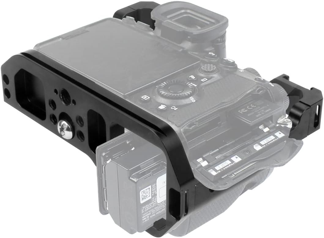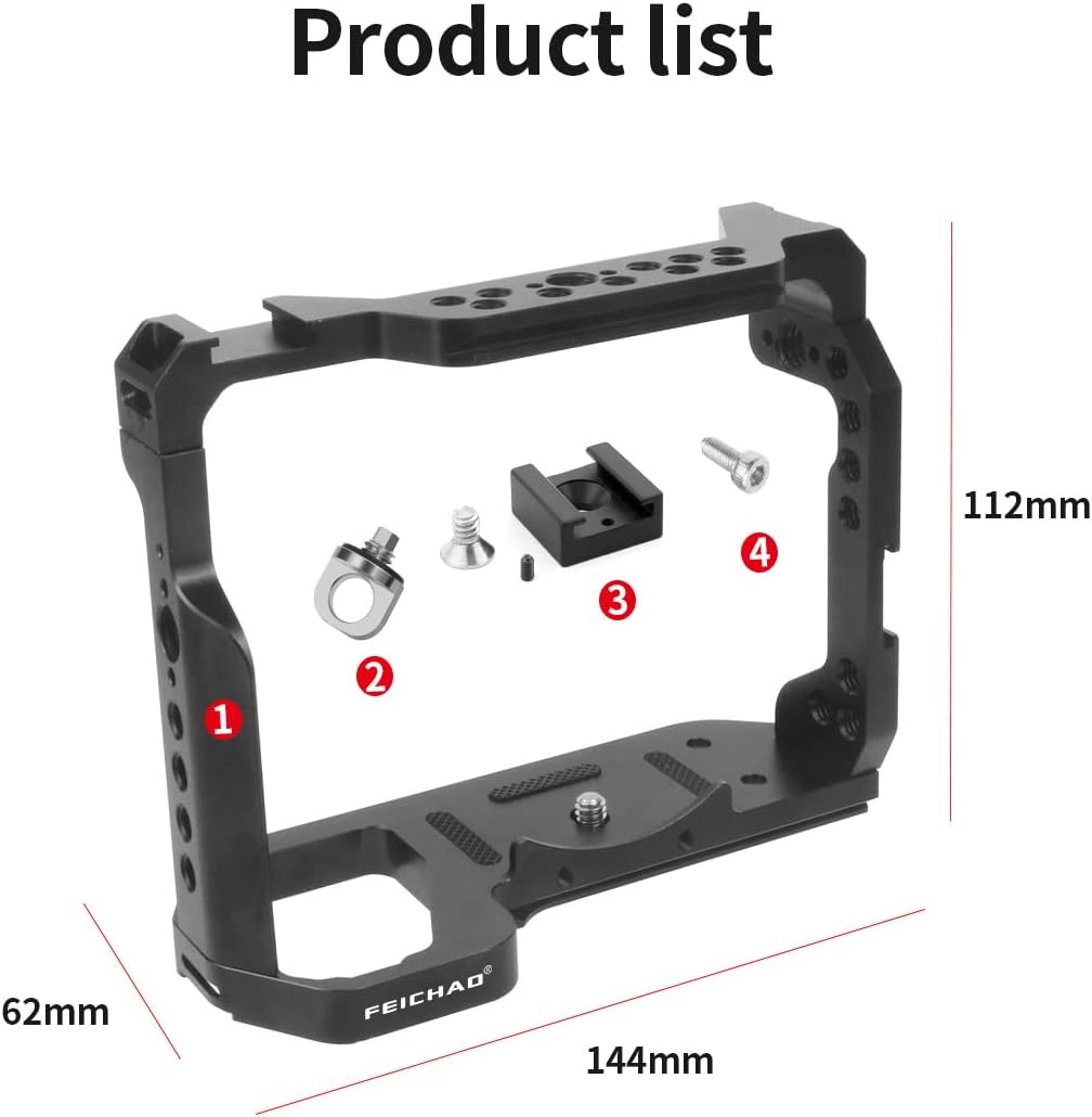 FEICHAO Camera Cage Aluminum Compatible with Sony A7C / A7R3,A7M3, A9 Case Rig DSLR Camera A7C Cage Features: 1. Formfitting Full Cage for Sony A7C, Compact and Various assembly, Easy ing. 2. Shockproof, Double screws to fix on the side and at the bottom, Firmly Fixed to Camera. 3. Abundant external holes, Horizontal and vertical ing can be achieved, 1/4"-20 & 3/8"-16 Threads and A-style Mounts, Cold Shoe interface. 4. Integrated Arca-style Plate, and Cold Shoe Mount. 5. Easy to disassemble, Comes with one multi-purpose T-shaped hexagonal wrench tool. 6. Reserve battery disassembly and assembly position for the camera, Does not block camera buttons or cable holes. 7. Real machine modeling design, CNC carved. Detail: Brand: Feichao Material: aluminum alloy + stainless steel screw Aluminum alloy surface process: the surface is inferior oxidation Size: Only Cage about 143 * 55 * 93mm Color: black Packaging: bag + boxed (164 * 114 * 61) Product new weight: Only cage about 330g
