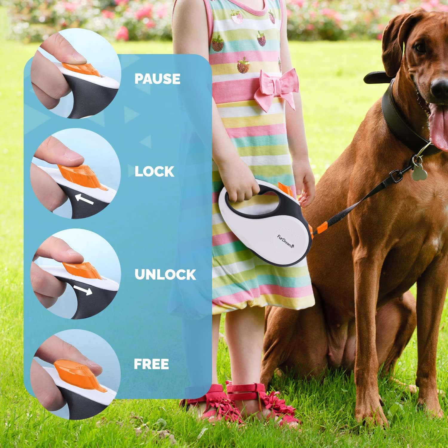 LONG LEASH – Our FurDreams Dog Lead is high extendable and reaches 5 metres in length at the max! This is an anti-tangle, nylon leash ribbon with 360-degree movement and allows your pet a high level of freedom whilst making sure they are under your control.