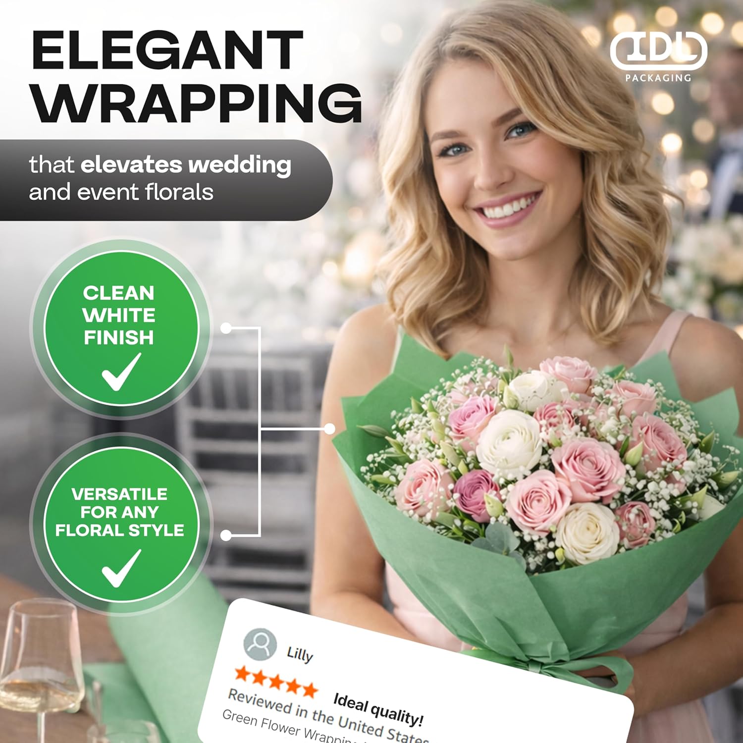 Elevate your artistry with IDL Packaging’s premium green flower bouquet wrapping paper roll 24 inches wide and 1200 inches length, engineered for professional florists. Our continuous kraft paper format offers ultimate flexibility, allowing you to cut custom lengths for any arrangement, from single stems to massive bouquets. This high-end flower wrap transforms every bouquet into a sophisticated, gallery-worthy masterpiece. Crafted from heavy-duty, high-density kraft wrapping paper, this flower packaging paper provides superior shape retention and tear resistance. It is designed for effortless pleating, holding its structure firmly during transit. Featuring water-resistant technology, floral paper for bouquets maintains vibrant color and crisp texture even when in contact with damp stems or humid flower environments. The ultimate choice for year-round events, our roll paper adds a sense of ritual to every gift. Made from high-quality, recyclable materials, floral wrap is an eco-conscious solution that offers a beautiful, organic feel. This sustainable presentation appeals to modern customers while maintaining a sophisticated, professional matte aesthetic for any occasion. With decades of expertise, IDL Packaging delivers precision you can trust. Our wrapping paper for flower bouquet is the choice for experts demanding excellence and consistency. Ensure every creation is a masterpiece with a roll balancing luxury, durability, and environmental responsibility.