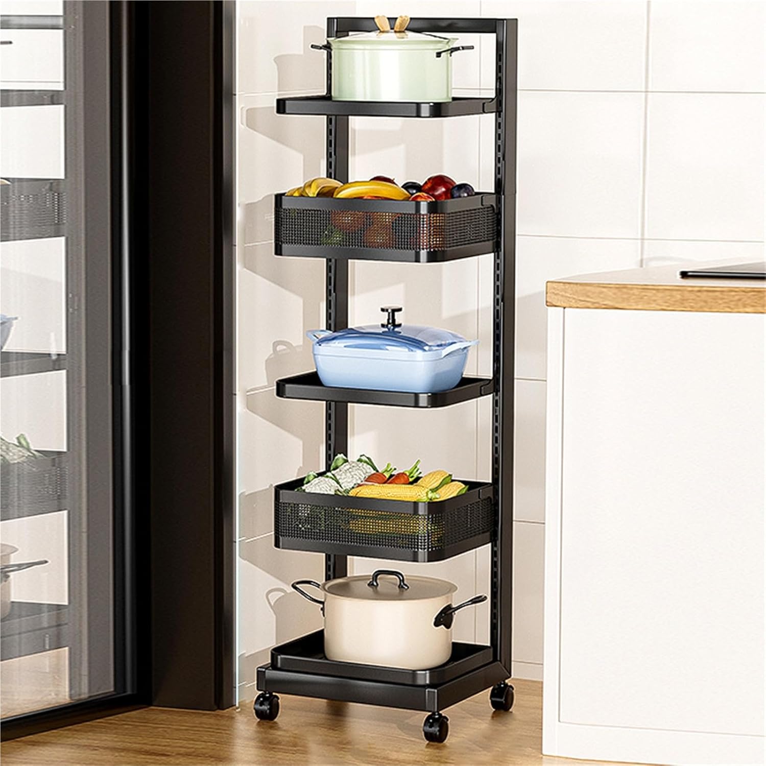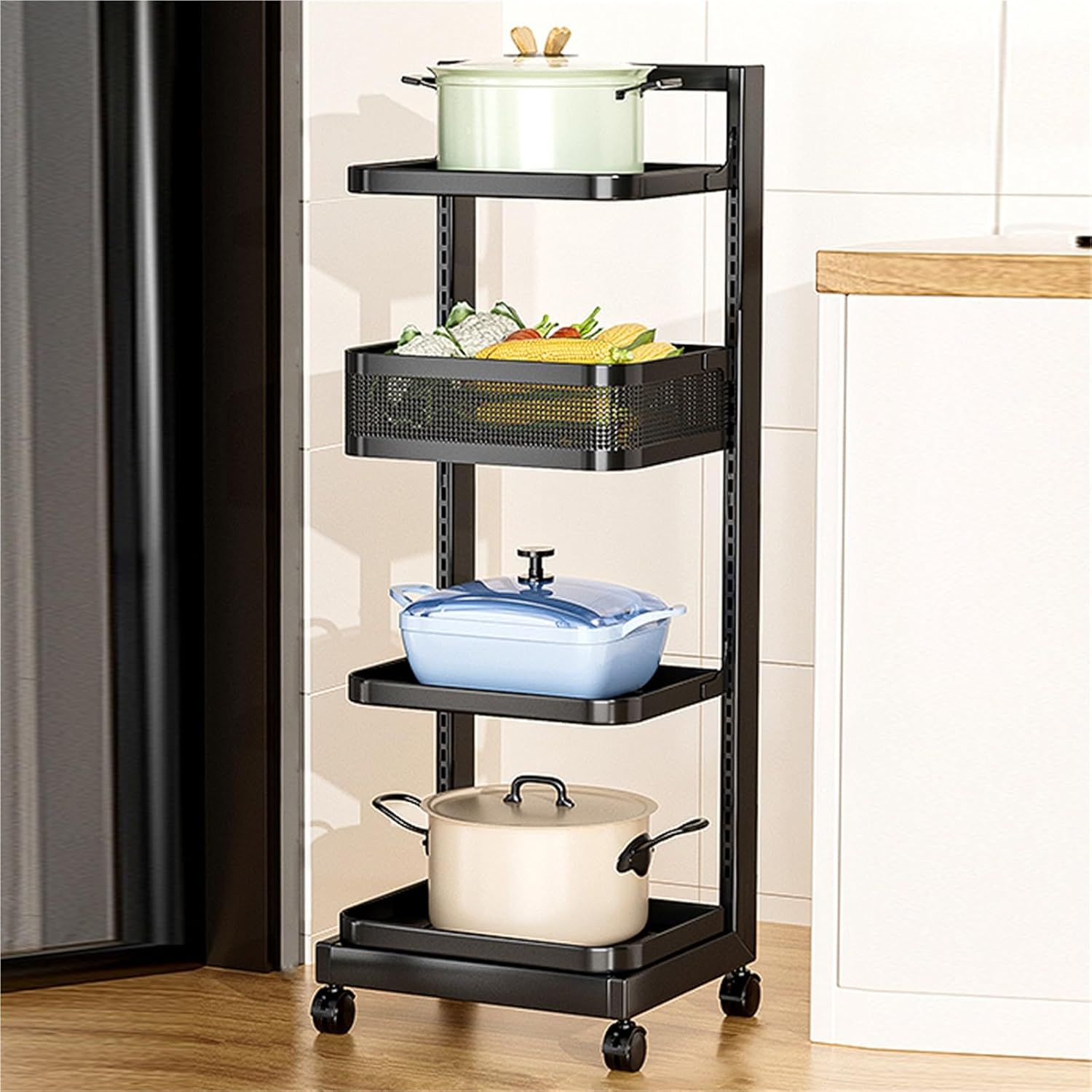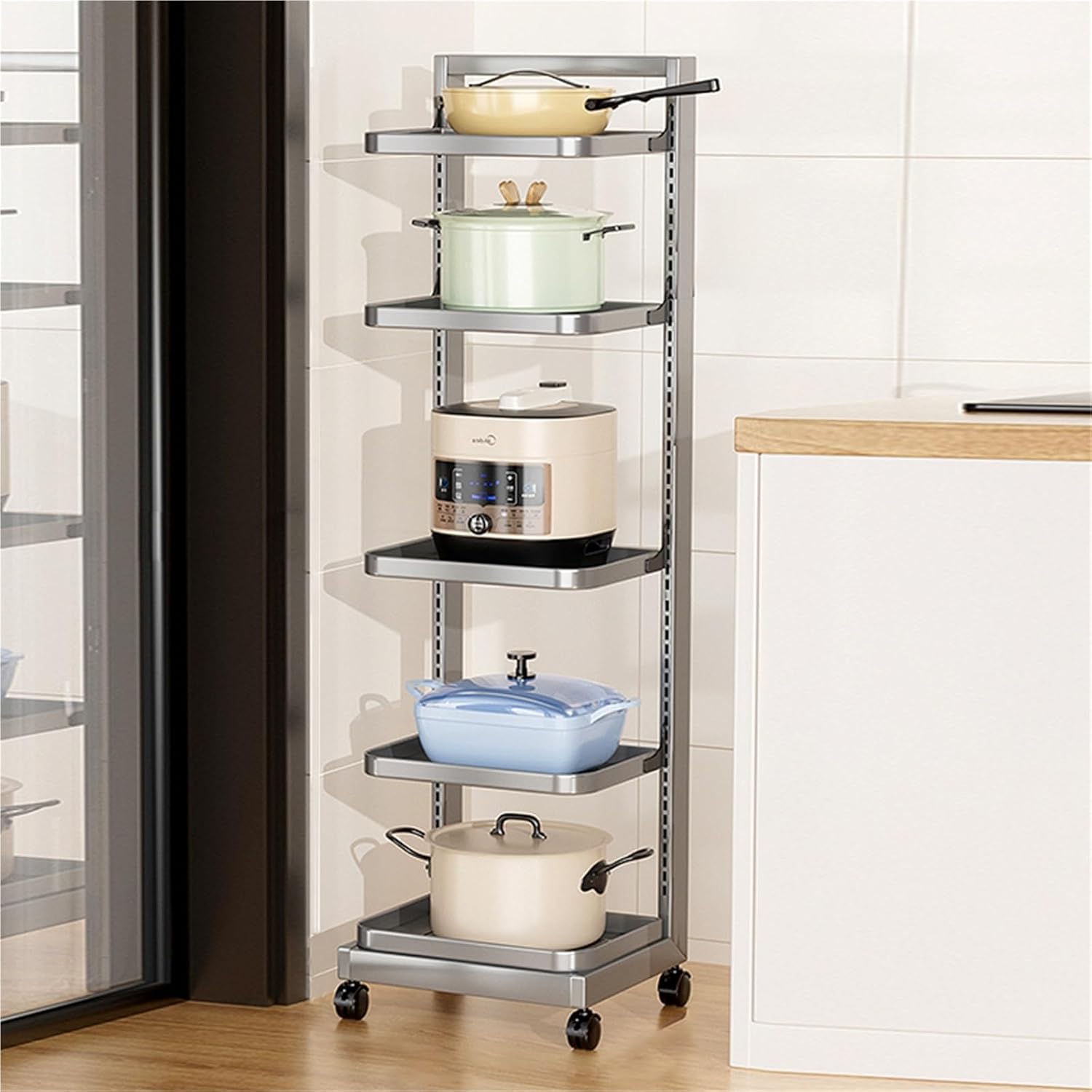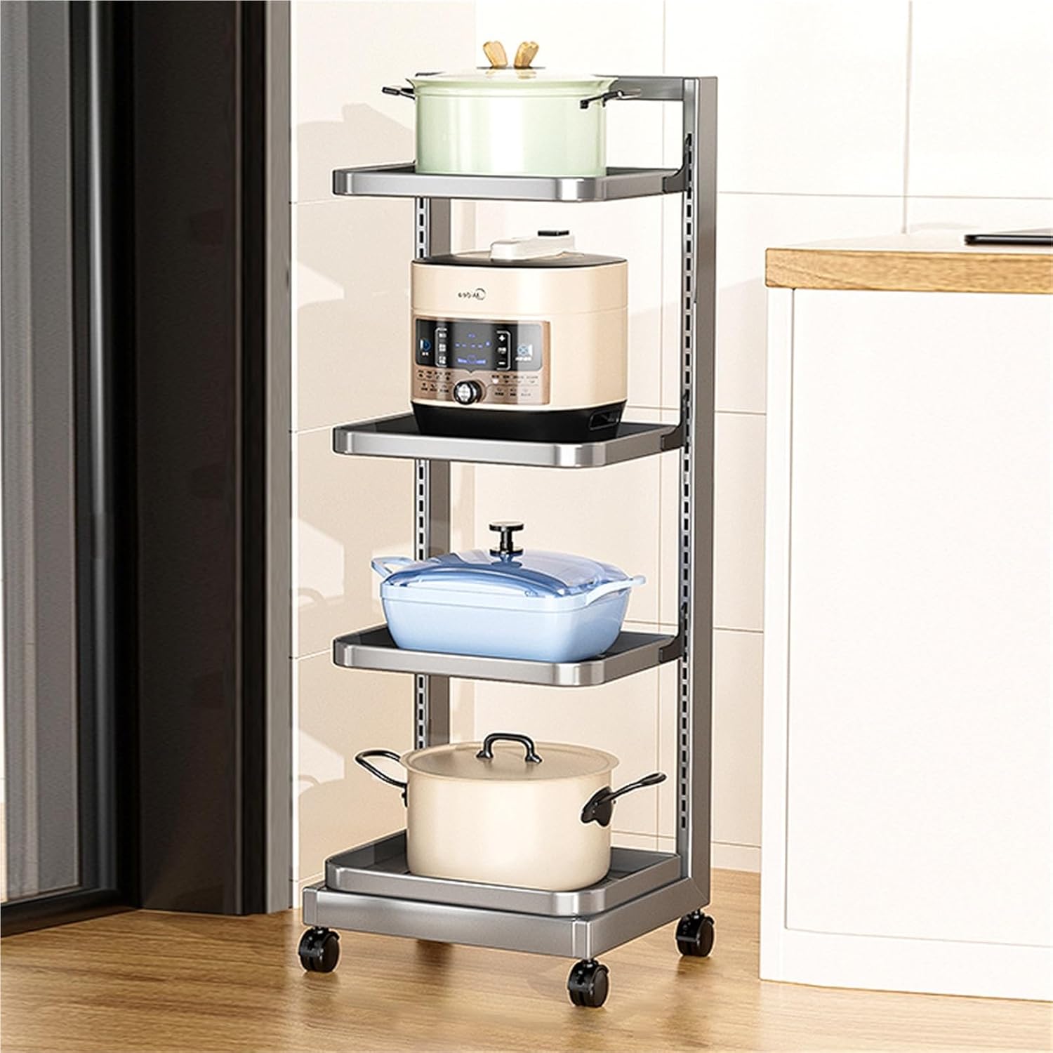 This saucepan rack offers a great solution to keep your pots and pans in one single place. Provision a Space-Saving solution that keeps your cookware organized and within reach.Smooth edges on each tier help protect pans from scratching. Versatile options for sheet pan organizer, pot pan organizer, pan holder rack kitchen, pot lid holder, and kitchen rack organizer.Made of Stainless Steel, the overall sturdiness is fantastic. Product Name: Pot RackSpecifications: 4/5 TierPackage Include:1* Pot RackNotes: Manual measurement, please allow slight errors on size. Please measure the size of your cabinet before purchasing our pots organizer.
