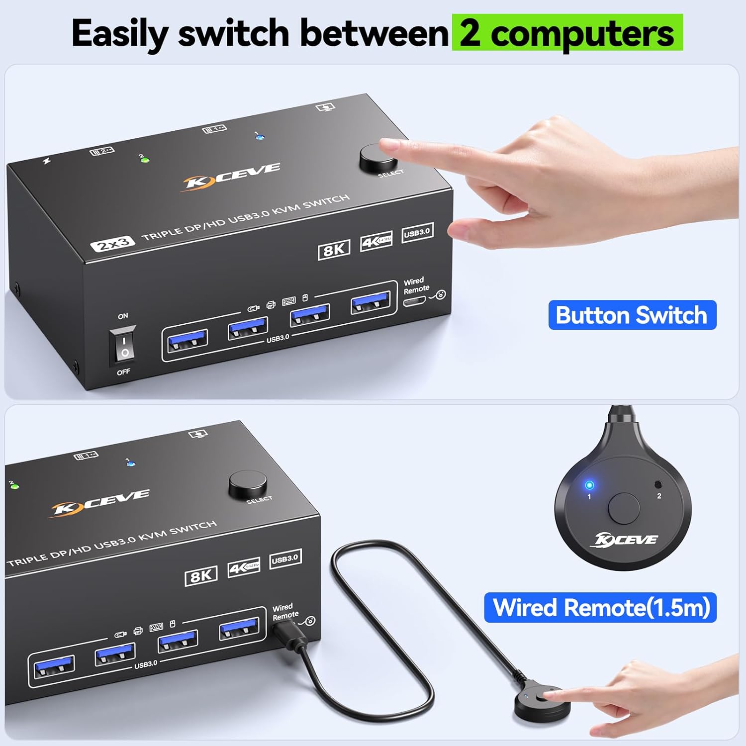 | Included Components | 3 Monitors KVM Switch; 2*USB3.0 Cables; Wired Remote; Power Adapter;User Manual |