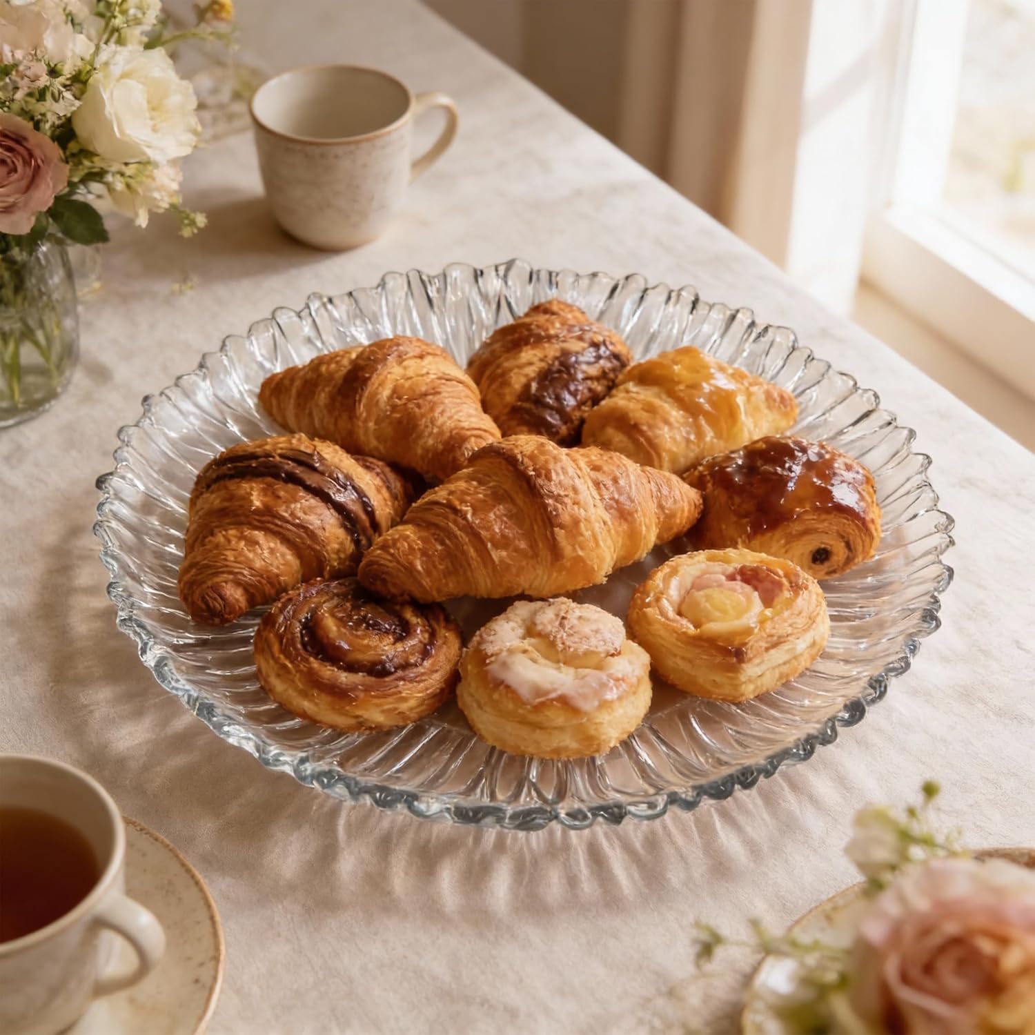 USAGE: Display and serve delightful cake platters, dessert arrangements, and fruit trays using these sophisticated Glass Serving Plates. Perfect for showcasing cakes, pastries, danishes, petit fours, fruits, and more, these trays are an excellent choice for weddings, birthdays, Christmas parties, buffets, or family dinners. STYLISH: Designed with a polished and stylish aesthetic, these Glass Serving Platters feature a seamless surface and an attractive wave rim. Enhance the presentation of desserts by serving them on these trays; the reflective surface heightens their visual appeal, making them look even more enticing. MULTIPURPOSE: Beyond serving, these Glass Serving Plates also function as versatile decorative pieces. Create an eye-catching fruit display on your living room or dining table, adding a touch of sophistication to your home decor. They also serve as an elegant platform for arranging scented candles or tea lights. HIGH QUALITY MATERIAL: Crafted from high-quality, resilient glass, these plates are exceptionally durable and entirely dishwasher safe. The platter measures approximately H1.5 x D32cm, offering a stylish and practical addition to your collection of tableware. GIFT IDEA: An ideal Christmas gift, present these Glass Serving Trays to your loved ones for a thoughtful gift they will genuinely appreciate and use repeatedly.