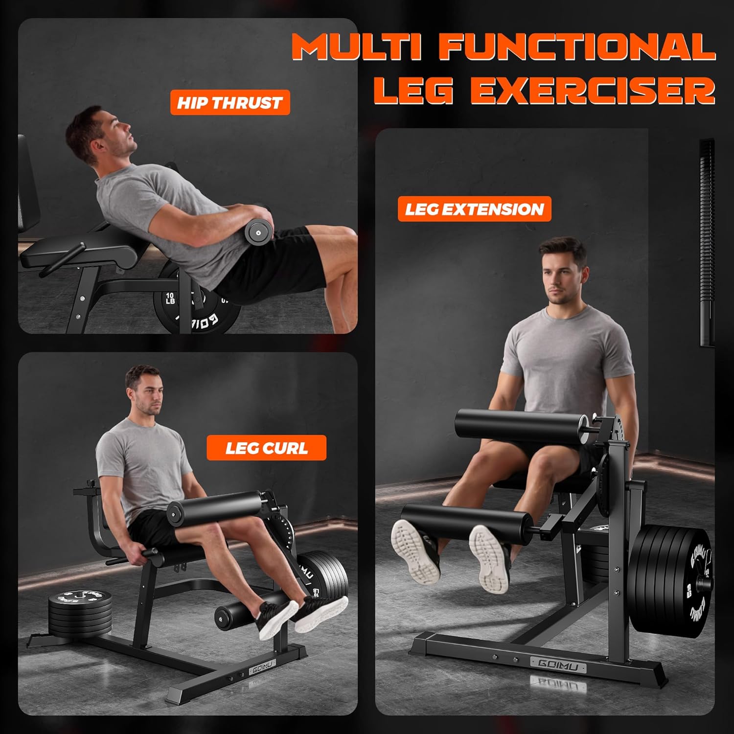 GOIMU Leg Extension and Curl Machine, 4 IN 1 Lower Body Workout Machine, Adjustable Leg Curl Machine with Plate Loaded, Leg Extension Machine with Exercise Bench, Home Gym Weight Machine