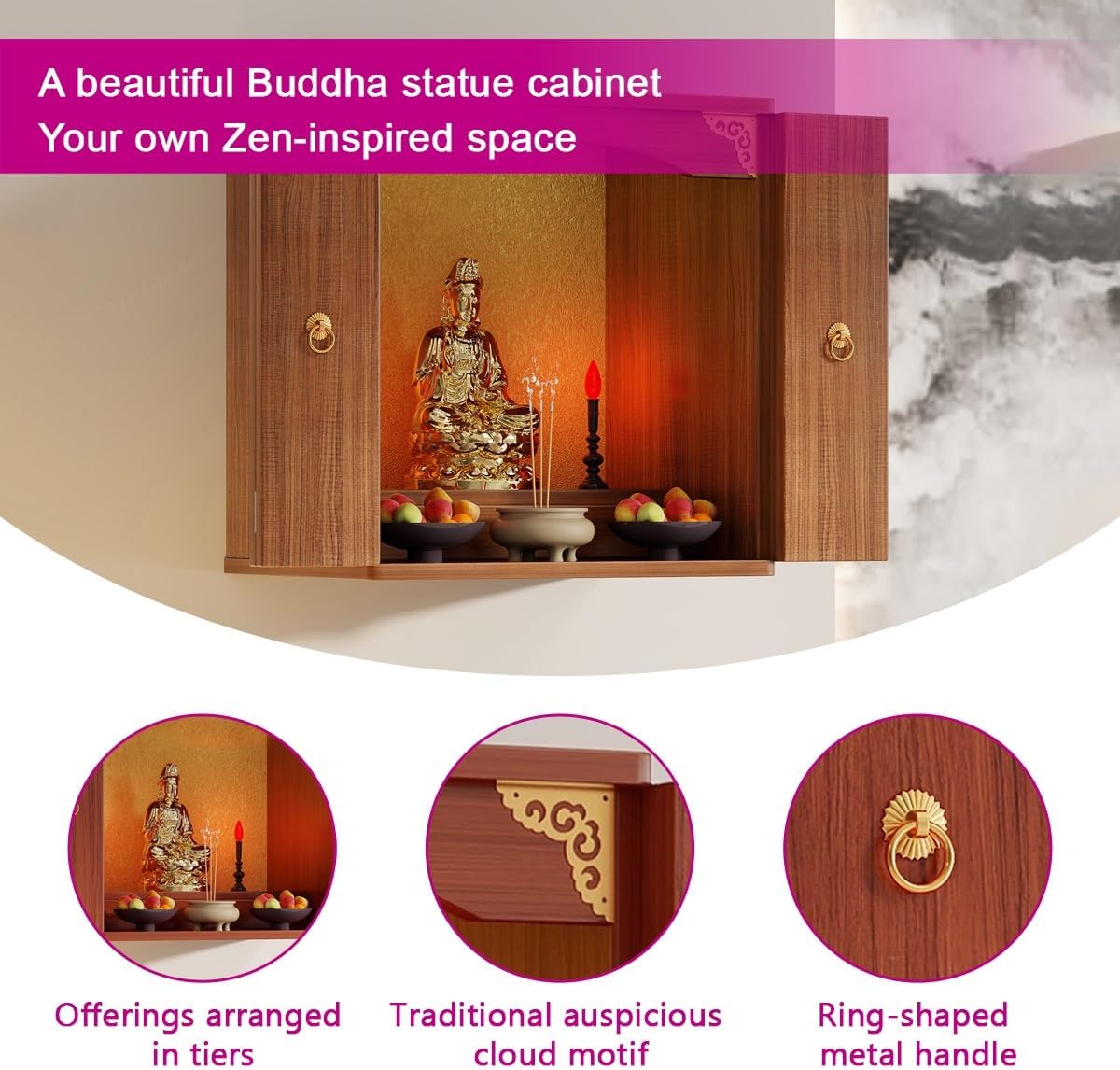 It can be used to hold Buddha statues, meditation bowls, teapots, books, and ritual items, great for meditation, prayers, rituals, witchcraft, and divination, and is widely used in living rooms, bedrooms, balconies, shrines, pantheons, and temples.✅ Name:Guan Gong Guanyin Buddha Statue Offering Table,Buddha Shelf Statue Stand,Pet Ashes House,Altar Cabinet,Pooja table,Altar shelf✅ Color: Grey , Brushed Oak , White , Teak , Light Walnut✅ Style: Chinese Style✅ Material: Bamboo, Hardware✅ Craftsmanship: Antique Finish✅ Package Included:1 * Buddha TableNote: We only sell buddhist cabinet, Excludes Buddha statues, offerings, and other items.✅ Warm Prompt:Manual measurement may cause small size deviations from listed specs.Color may slightly differ from images due to varying digital display settings.