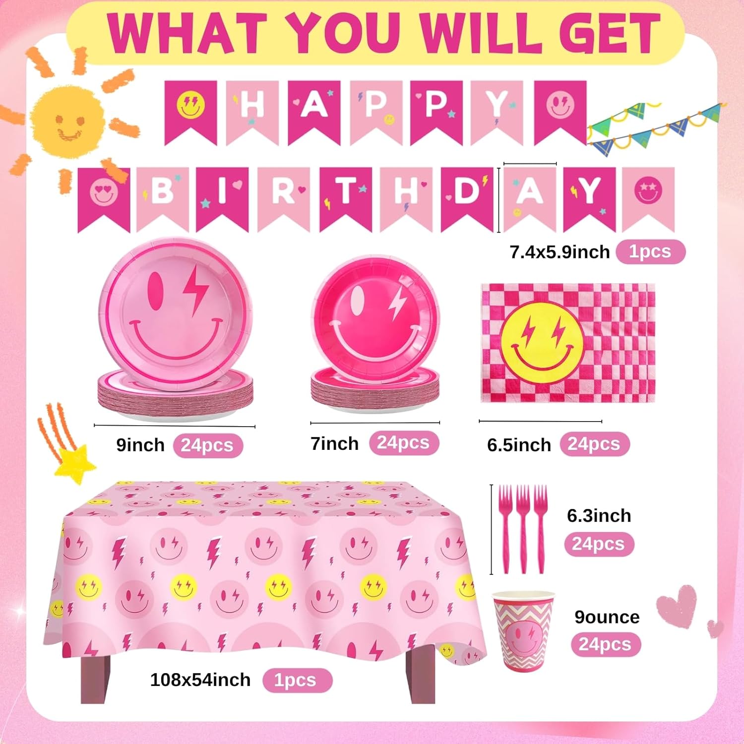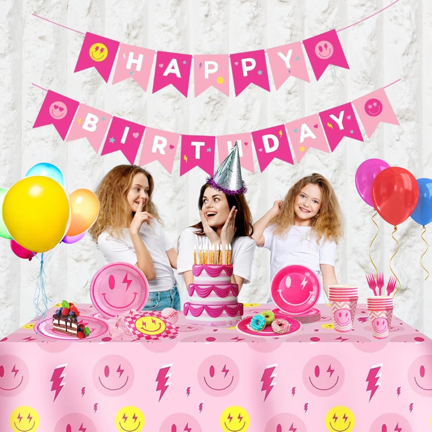 | Included Components | PINK BIRTHDAY BANNER, PREPPY SMILE FACE TABLECLOTH |