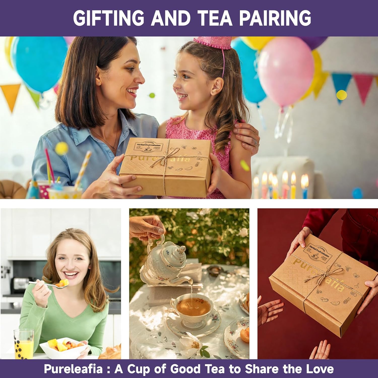 | Product Benefits | 100% Caffeine-Free & Edible Fruit Bits: This pure Herbal Fruit Infusion contains no tea base and no caffeine, ensuring a smooth taste with zero bitterness. Using a specialized low-temperature drying process to preserve natural vitamins and vibrant colors, these premium fruit chunks are high-quality enough to be eaten as a healthy snack after brewing., Extra Large 2L Yield & Family-Sized Sharing: Unlike standard small tea bags, this Herbal Fruit Infusion features massive 15g independent sachets specifically designed to brew a full 2L (approx. 68 oz) pitcher with just one pack. It is the most cost-effective and efficient solution for family feasts, backyard parties, or keeping the whole family hydrated throughout the day., Versatile Brewing for All Ages (Perfect Summer Hydrator): As a 100% sugar-free and natural drink, it serves as the perfect healthy alternative to sugary juices for kids. It supports both a "Classic Hot Brew" (3-5 mins) to unlock deep aromas and a "Refreshing Cold Brew" (6-12 hours), making it the ultimate cooling centerpiece for the summer season. |