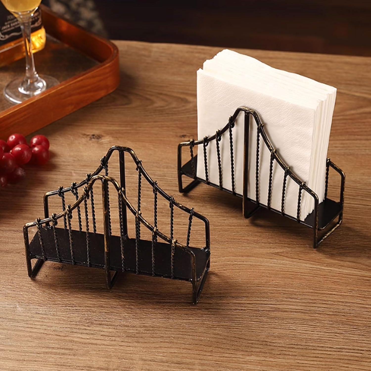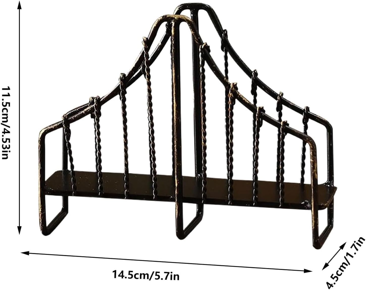Name: Creative iron chain bridge paper towel holder Material: wrought iron Size: 14.5*4.5*11.5cm Net weight: about 0.16kg Scene: suitable for home, bar, tea room, hotel, office and other scenes