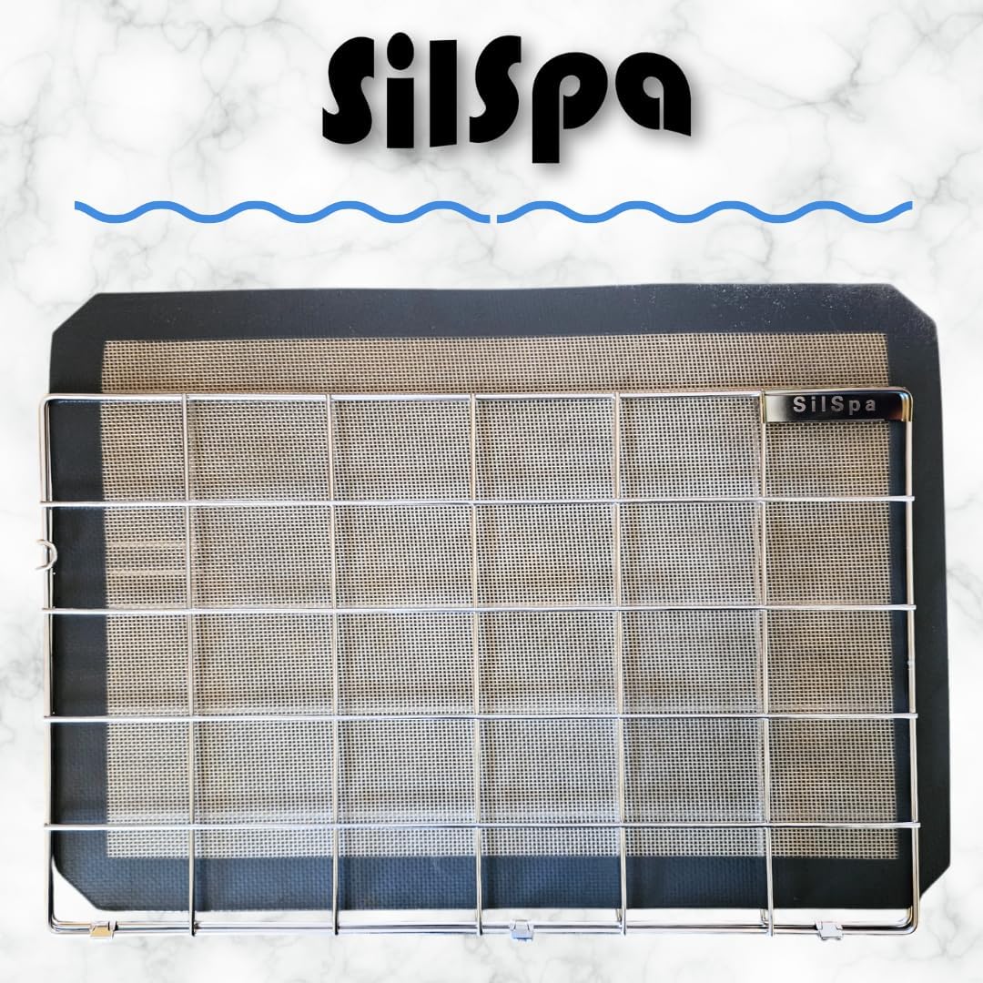 *Silicone Baking Mat not included The ultimate silicone mat stand for Your kitchen Experience the convenience and efficiency of the SilSpa, the revolutionary solution for dishwasher-safe cleaning of silicone baking mats. Say goodbye to the hassle of hand-washing and the disappointment of greasy, slimy mats. Transform your kitchen routine with the SilSpa, a stainless steel cage designed to keep your silicone baking mats and other dishwasher-safe items upright during cleaning. This easy-to-use, space-efficient tool ensures a thorough wash, eliminating the need for handwashing. Ideal for silicone lids, trivets, coasters, placemats, and resealable food save bags, it accommodates small and large mats alike.