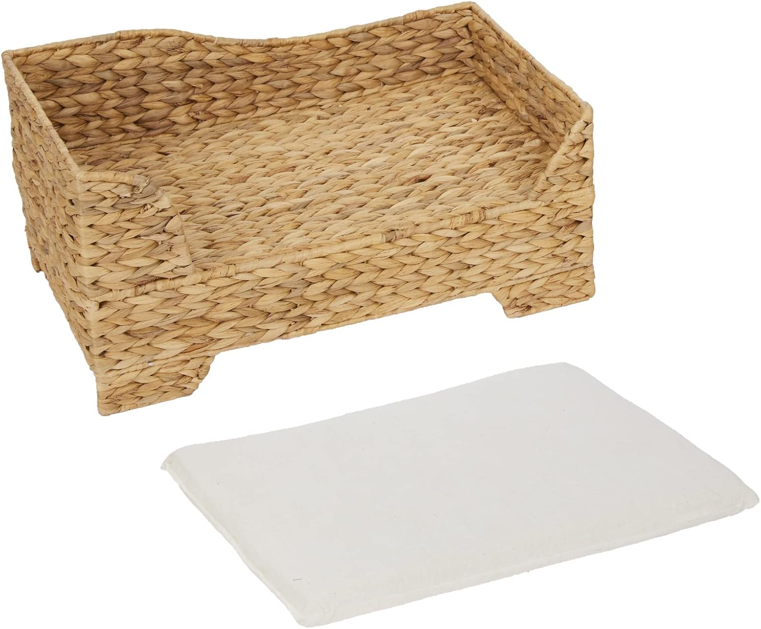 The Teamson Pets Neith cat or dog day bed creates a warm and comfortable environment for your four legged friend when they need a nap after a busy, curious day! Our wicker Seagrass Daybed pet lounger doesn’t compromise on style, comfort or durability. This elevated lounger has a cream-coloured cotton fabric cushion that keeps pets comfortable during naps and is removable for washable / easy cleaning. With its natural seagrass design, this versatile pet bed complements existing home decor and can be placed in living rooms, family rooms, hallways, bedrooms, offices, and more. The sturdy daybed-style frame offers stability and long-lasting durability, while the smooth woven surface is burr-free and will not get caught in their fur while in use. Easy to assemble and suitable for cats or dogs our pet day lounger stands at 26.9cm