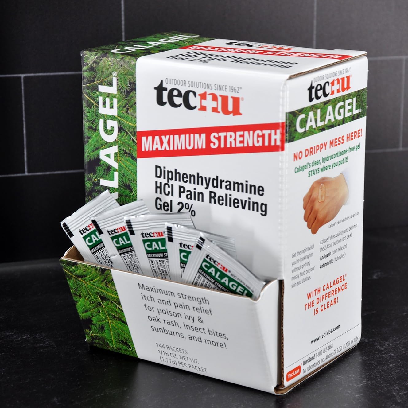 Individual packets! 1/16 oz, 144 packets per box. Calagel is a clear gel that offers maximum strength itch relief and stays where you put it. Calagel provides cooling relief for insect bites, sunburn, minor burns, and other minor skin irritations. Calagel's formula is hydrocortisone and steroid-free. Plus, Calagel offers long lasting itch relief.