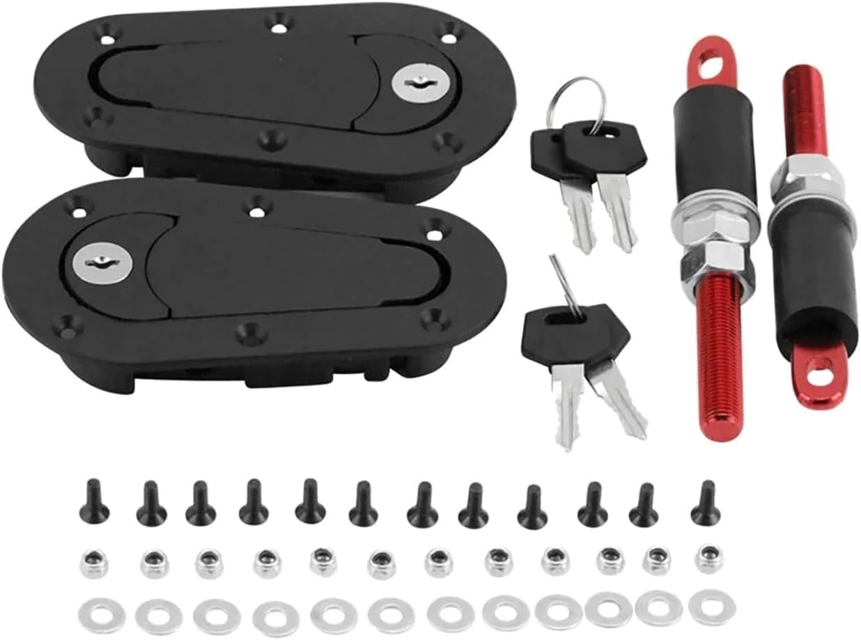 Specification:Name: Car Hood LockMaterial: hard ABS + aluminum alloyType: with lock, without lockQuantity: 2Pcs/setApplicable models: UniversalSize: 13.3*7.2cmColour: BlackPacking included: 2 x Car Hood Lock2 x Bolt4x Keys1 x set of Installation Accessories