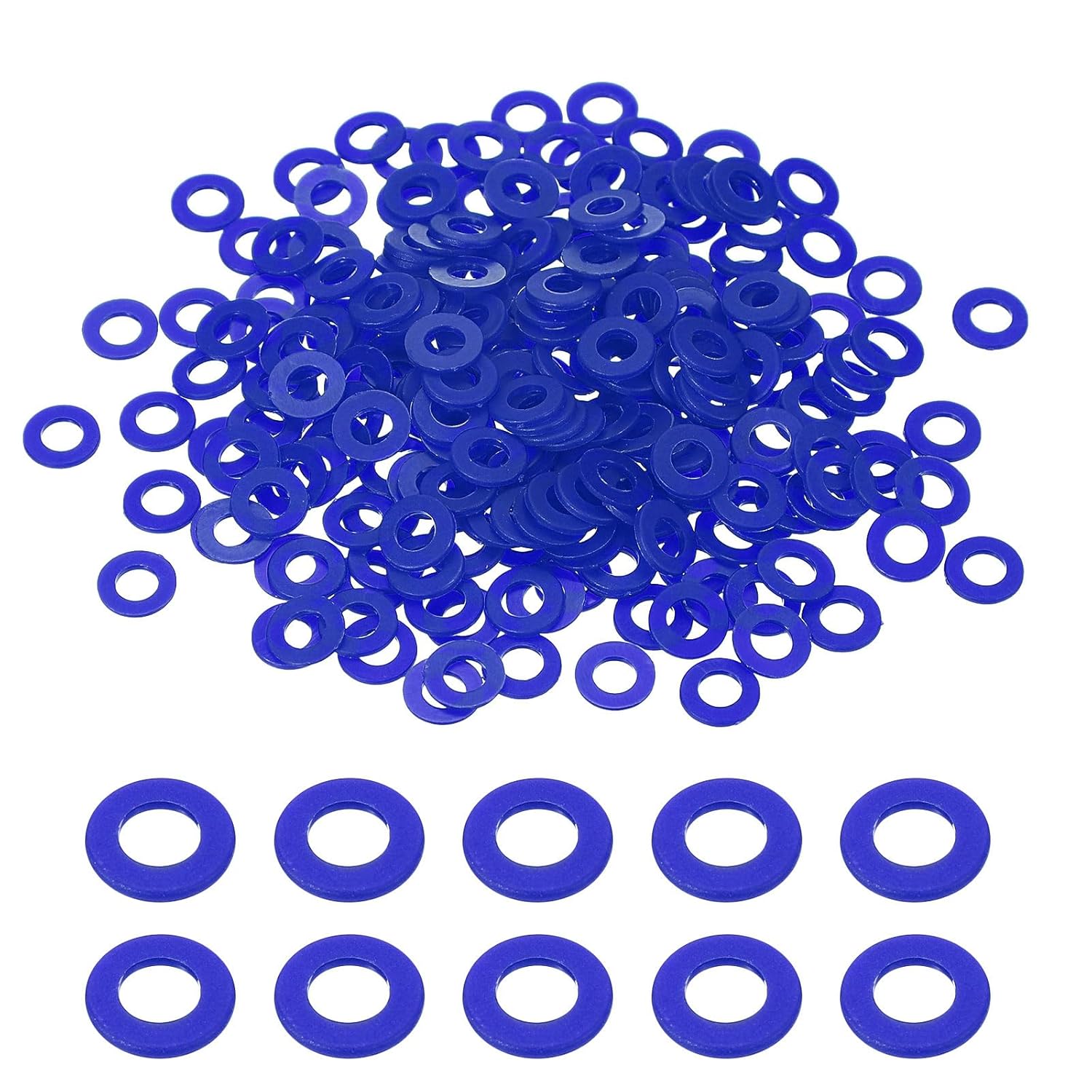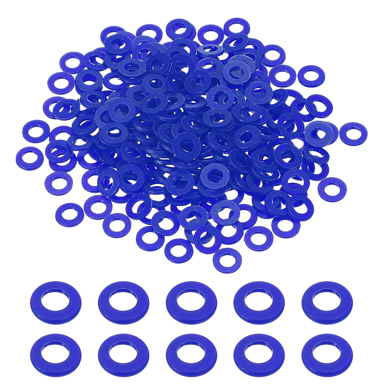 DescriptionMaterial: Made of durable nylon material, these washers are lightweight, offer good insulation, are rust and corrosion-resistant, portable, and durable. They exhibit superior rust and oxidation resistance, ensuring longevity.Design: Nylon flat washers play a crucial role in reducing friction between fasteners, preventing leaks, isolating components, and resisting loosening or pressure scattering. The nylon material provides excellent corrosion resistance and wear resistance, ensuring extended use.Easy to Use: These washers are effortless to install and feature smooth surfaces that reduce friction between screws and nuts, prevent leaks, isolate components, and resist loosening or pressure scattering.Multiple Use: These nylon washers find versatile applications in automotive and electrical connections across household and commercial appliances.SpecificationMaterial: NylonColor: BlueSize: 2mm x 5mm x 1mm/0.08" x 0.2" x 0.04" (ID*OD*T)Package List: 50 Pcs x Nylon Flat Washers