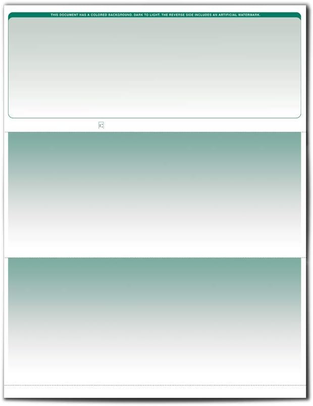 Versa Check Value Chex Blank Check Paper - Form #1000 Business Voucher Check on Top complies 100% with ANSI X9 banking standards. Compatible with all leading accounting solutions and check printing software. This package contains letter-size 24lb security blank check sheets, each sheet (8. 5" x 11") includes one check on the top third of page, two stubs below, micro-perforated at 3. 5", 7" and 10. 5" from top edge. Security features include erasure protection, micro print lines, security screens, and artificial watermarks. Blank check paper offers extra storage security and the convenience of updating checking information at anytime. For automated check clearing to comply with bank regulations please use Versaink MICR ink cartridges in your inkjet printer or Versa Toner MICR toner cartridges in your laser printer.